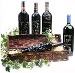 Leider war ich an seinem 40. Geburtstag nicht da, sondern im Urlaub. Daher habe ich vorher die Weinflasche online bestellt und zu ihm schicken lassen. Auf die Weinflasche konnte man in Silber oder Gold-Schrift einen netten Spruch gravieren lassen.